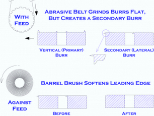 Removing a primary burr with a grinding belt, will create an unwanted secondary burr inside a hole.